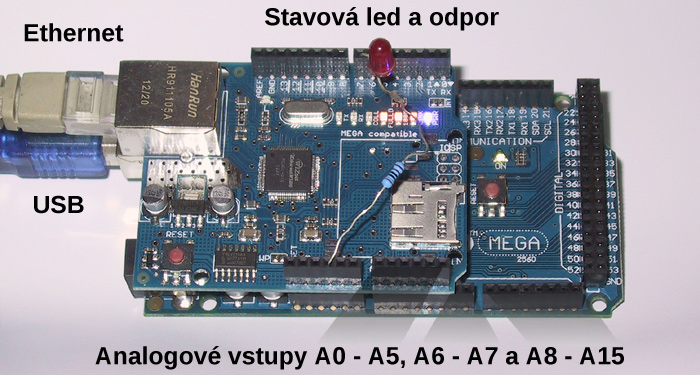 Je potřeba použít klasický LCD Keypad Shield. Je potřeba vyhnout na displayshieldu pin 4 a pin 10 bokem tak aby neměly kontakt s piny 4 a 10 na Ethernet shielu. Vyhnuté piny 4 a 10 na LCD Keypad Shieldu přemostíme a propojíme původní pin 4 z displaye na pin 14 Arduina a pin 10 na pin 15. Pin 10 ale není nutno na pin 15 zapojovat. Jedná se o podsvětlení a program pin 15 zatím nijak neovládá. Důležitý je ale pin 14 Arduina, který musí být napojen na původní pin 4 LCD Keypad Shieldu. Originální piny 10 a 4 nelze s displayem použít, protože pin 10 se bije s CS pinem ethernet shieldu a pin 4 s CS pinem pro SD kartu, která bude v pozdějších verzích využita.